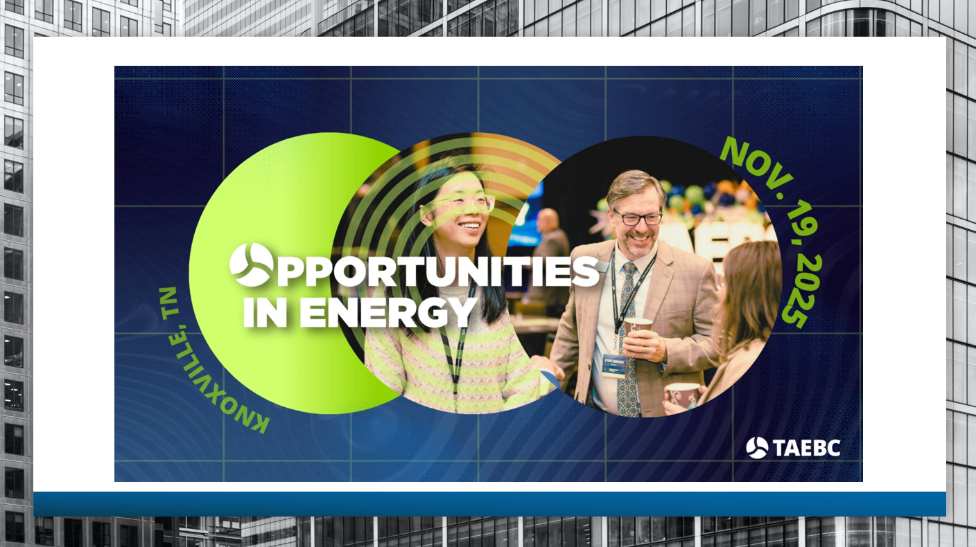 Join us at the Tennessee Advanced Energy Business Council (TAEBC) annual Opportunities in Energy event on Wednesday, November 19th at the Crowne Plaza in Downtown Knoxville. Don't miss the panel […]